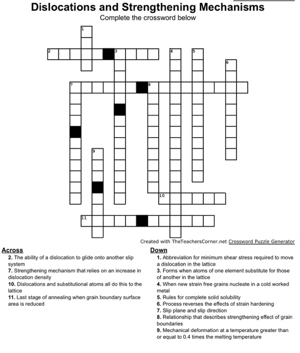 Solved Crystalline Imperfections Complete The Crossword Chegg Com