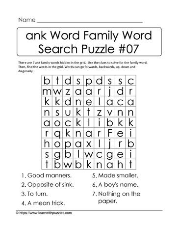 Ank Word Family Activity Learn With Puzzles